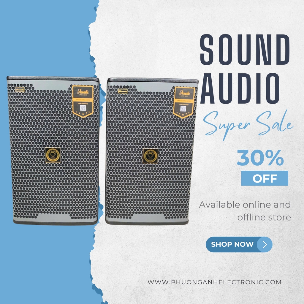 + Cấu tạo: Loa 2 đường tiếng, 1 loa bass 30cm, 1 loa treble +